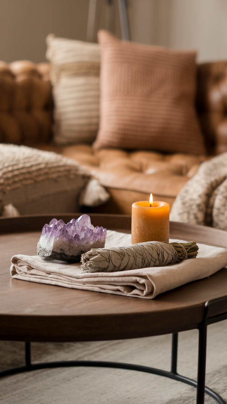 - Smudging with sage, palo santo, or incense.