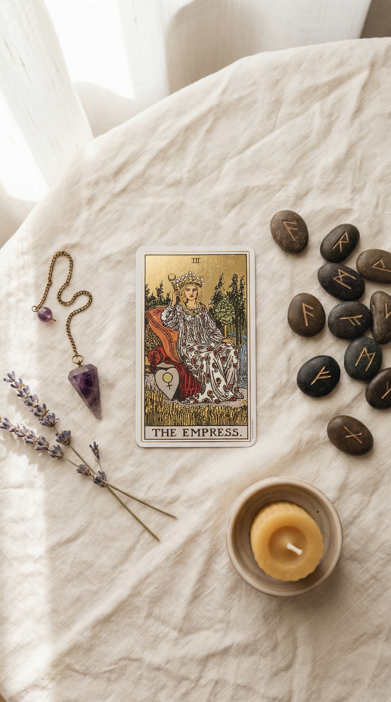 You don’t need a full ritual to begin. Pull one card in the morning and sit with it for a few minutes. Ask your pendulum one question and notice the response. Hold your rune stones and draw one when you need clarity.
